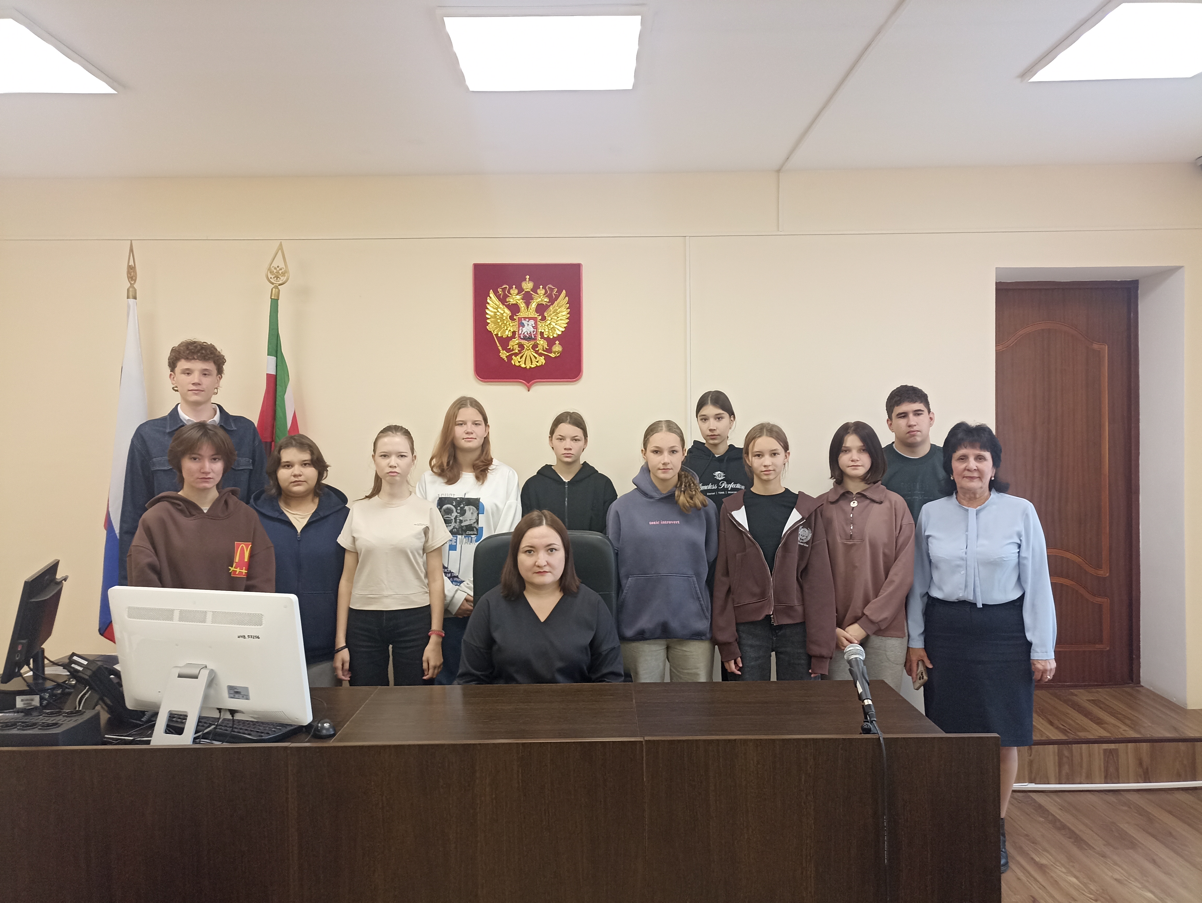 17 октября 2025 года в рамках реализации проекта «Правосудие от А до Я» учащиеся 9 и 11 классов МБОУ «СОШ №8» г. Нурлат посетили Нурлатский районный суд РТ. В начале встречи школьники побывали на открытом судебном заседании по уголовному делу. Учащиеся воочию увидели, как проходят такие стадии судебного разбирательства по уголовному делу как – последнее слово подсудимого и провозглашение приговора. Встреча со школьниками продолжалась беседой с судьей Алией Гильмутдиновой. Судья рассказала о судебной системе, уголовном судопроизводстве и ответила на интересующие учащихся вопросы. Встреча завершилась экскурсией по зданию суда.